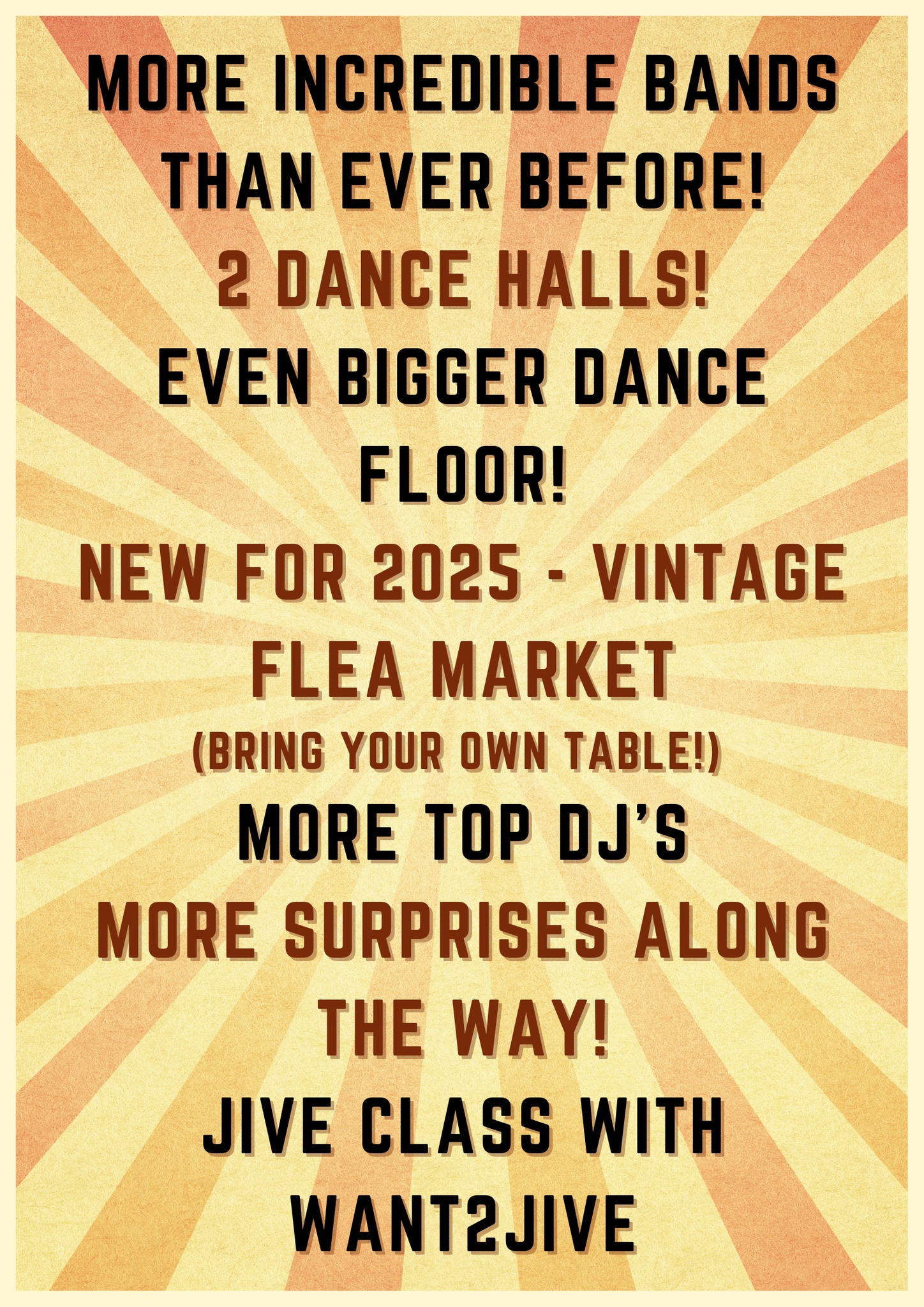 Midday till 1pm in the main hall.We're running the first for two Saturday Jive Classes at the annual Hot Rock 'n' Boogie weekender in Spalding. If you're attending the event, the Class is FREE.