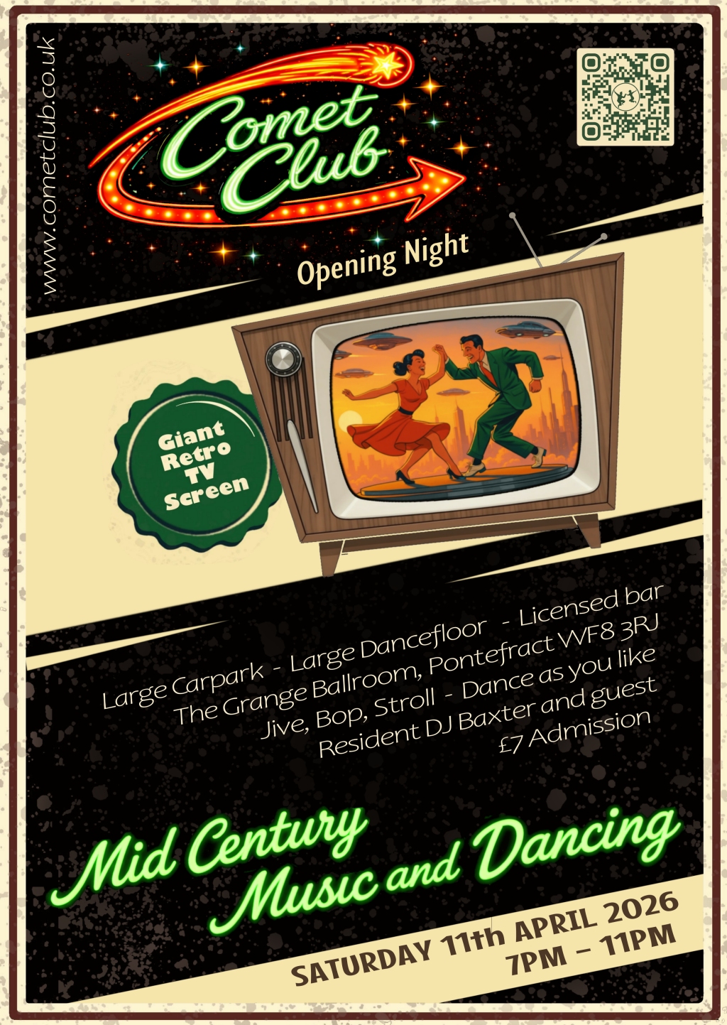 Fancy some Atomic Age Dancing with 50s Space Rockets and Flying Saucers Blasting Off as the backdrop? The Comet Club brings you all that... and more, capturing the essence of the mid 20th Century through music and vision.